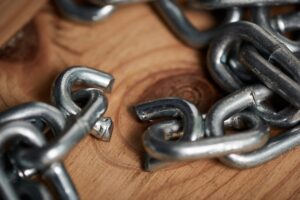 Sometimes you just have to let go. Shot of metal chains with a broken link.